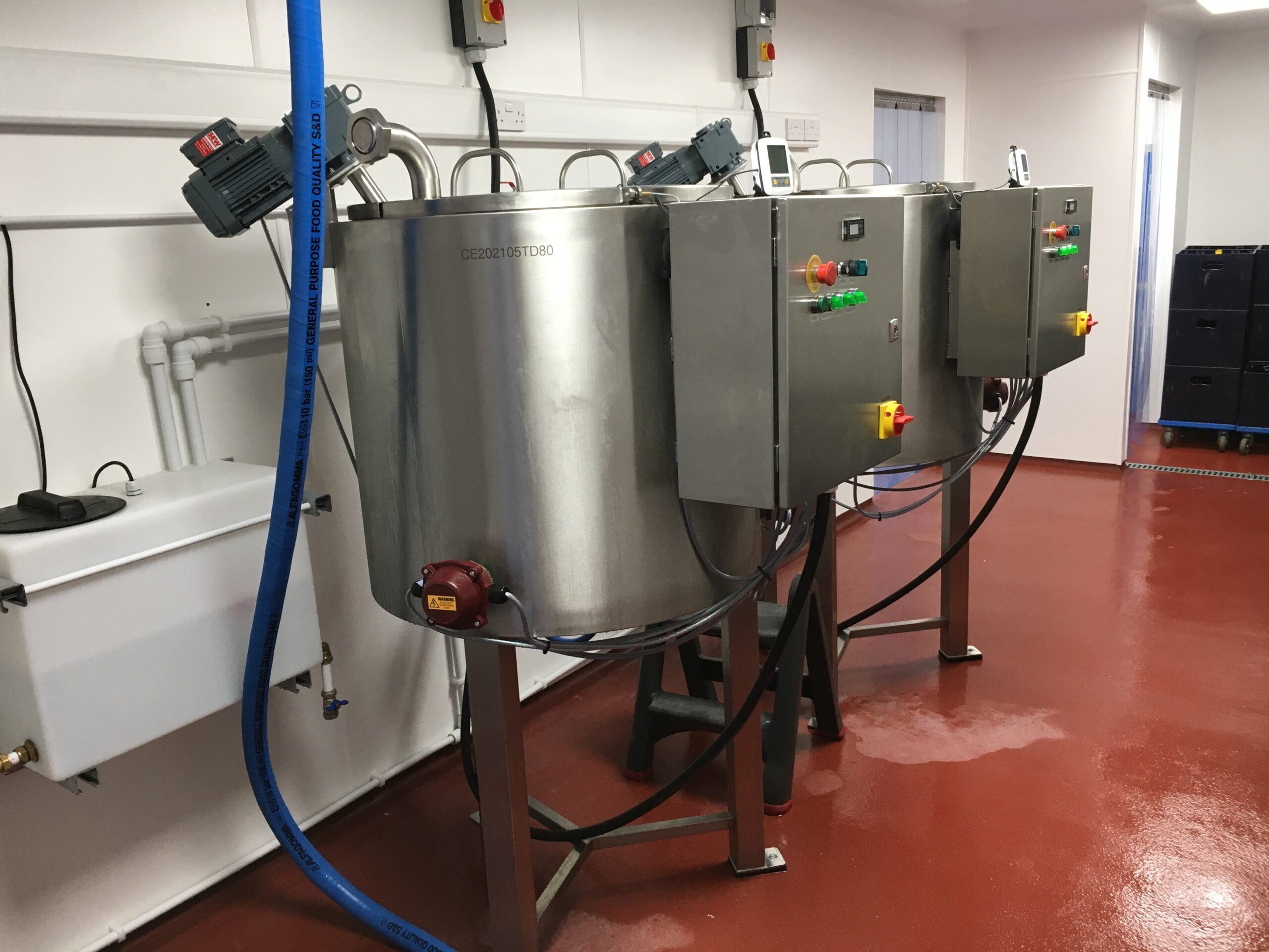 With our ever-growing milk production it was proving really difficult to get it all done from a tiny room. We worked on a new room within part of an agricultural shed and welcomed the arrival of 2 new 250 litre pasteurisers.